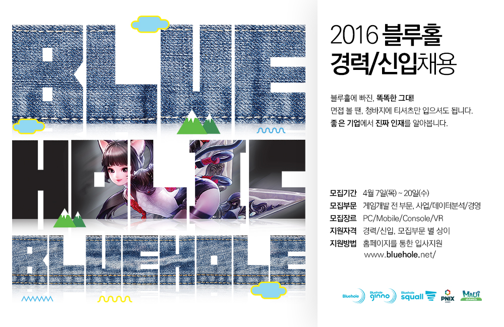 블루홀 2016년 상반기 신입, 경력 공개채용 실시!